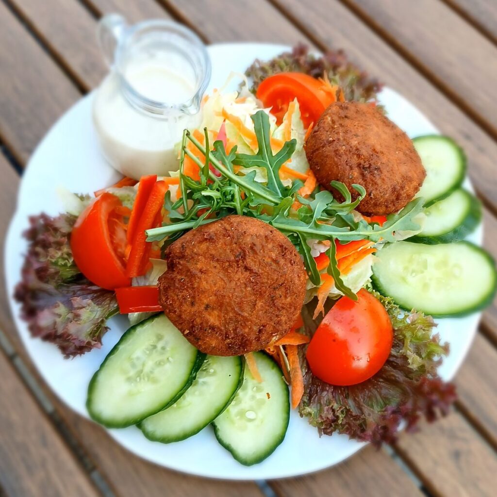 Vegane Bohnen-Minze Sticks auf Salatvariation